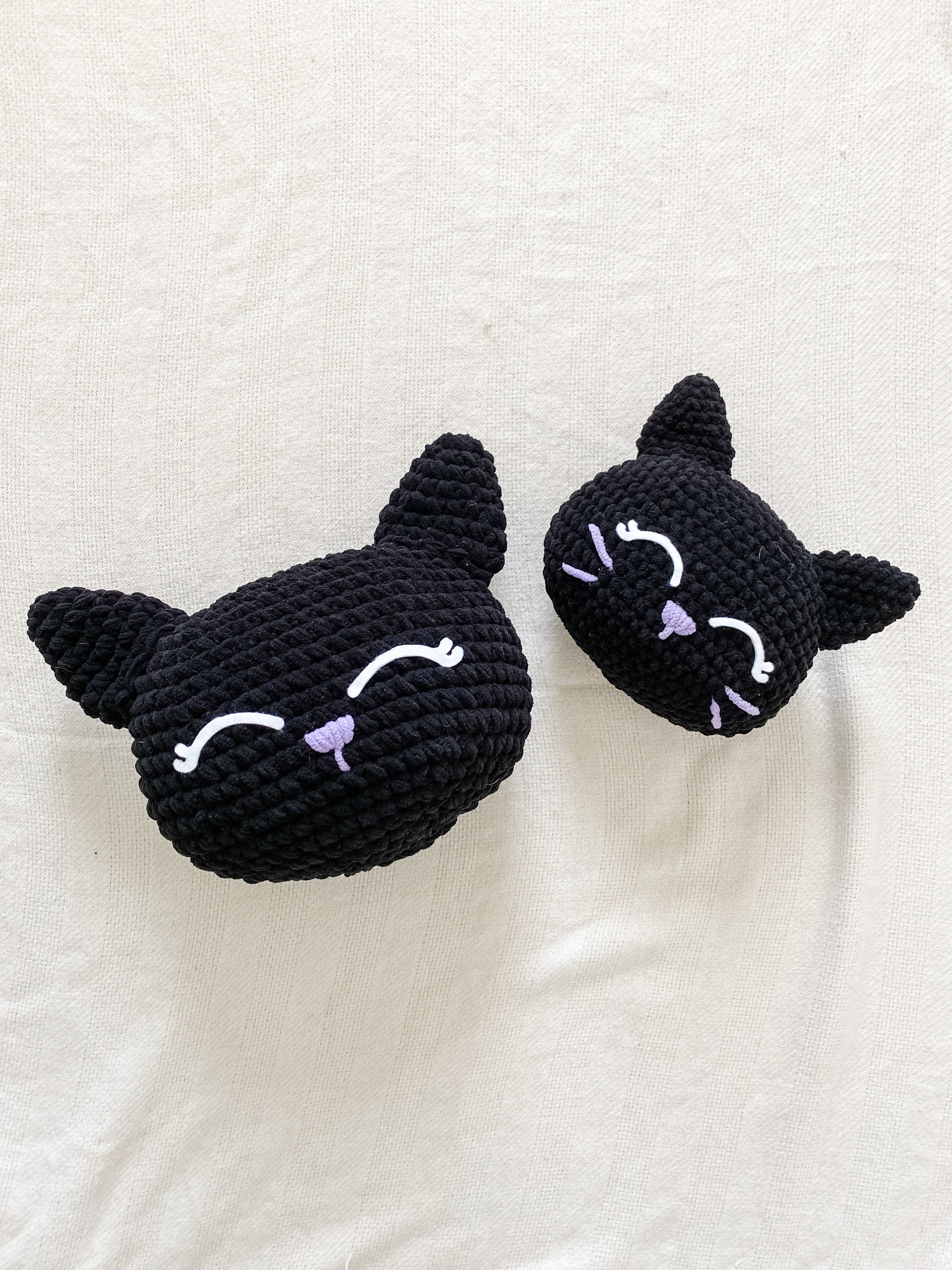 *Note: Eyes in the photos are created with felt, and they're approx. 2.75" and 3.5" long. I recommend embroidering eyes on your black cat pillow.