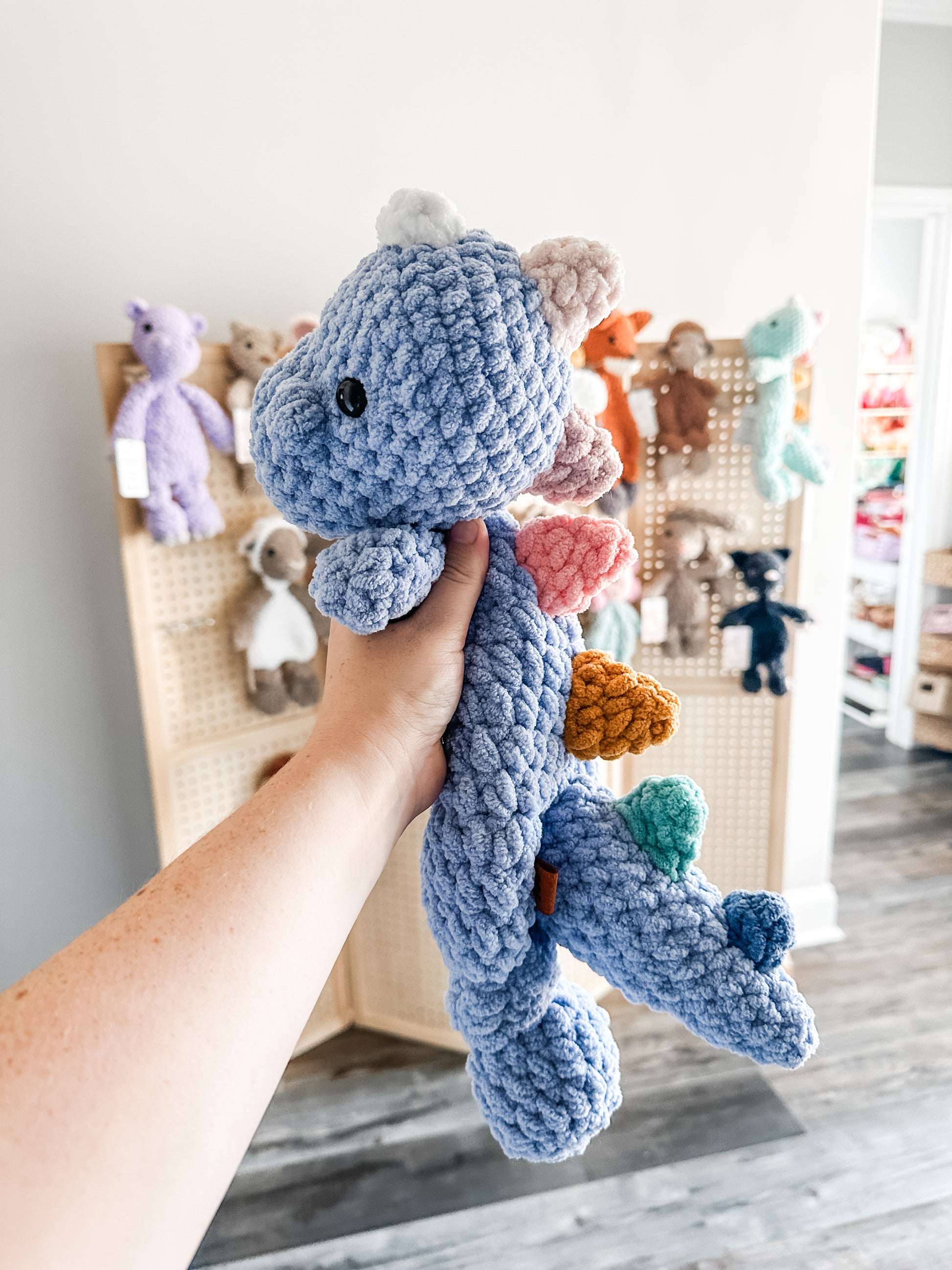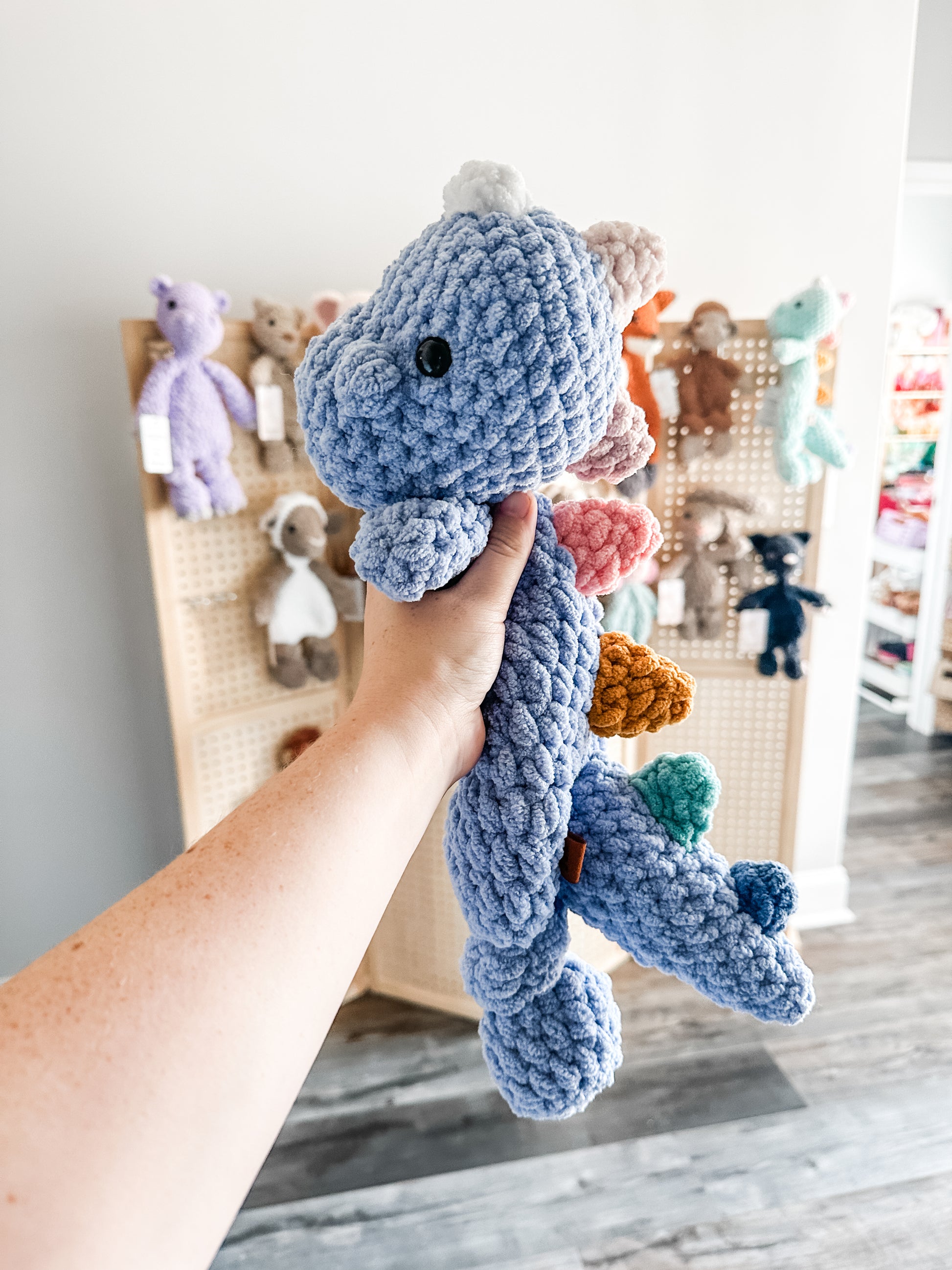 Get excited for your very own dinosaur snuggler! These dinosaurs are completely custom and made to order. They're perfect friend for toddlers and young kids! They make a great comfort toy or friend to snuggle up with for bed!