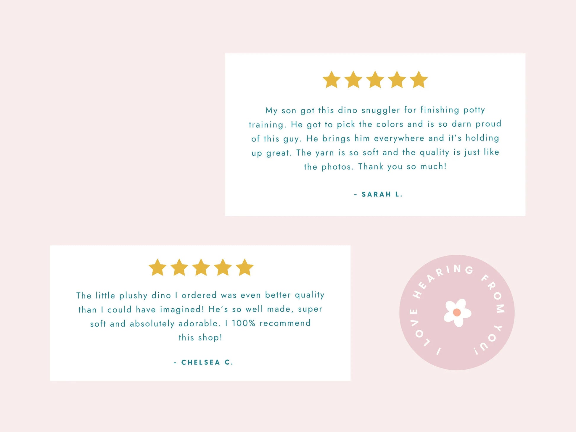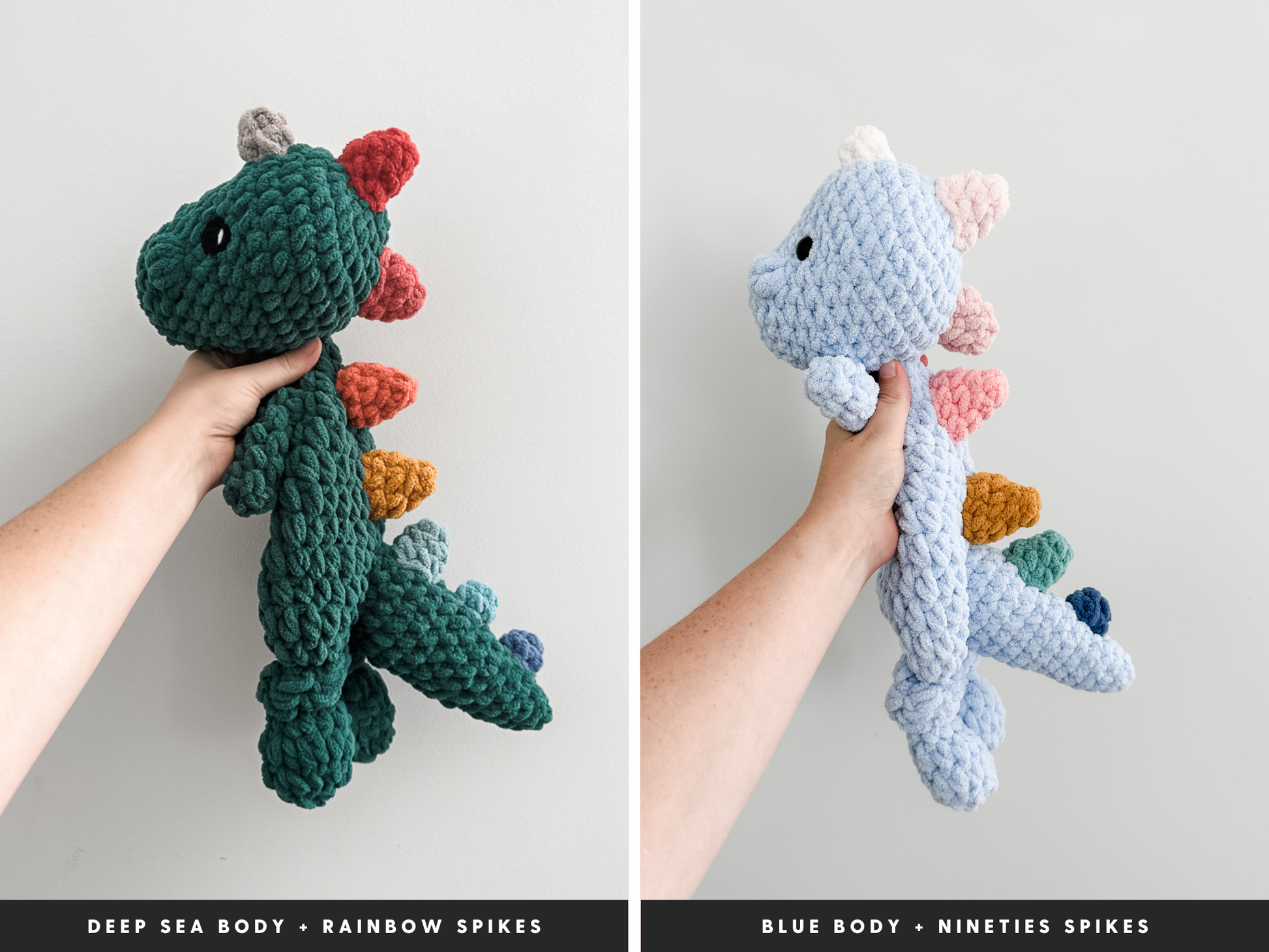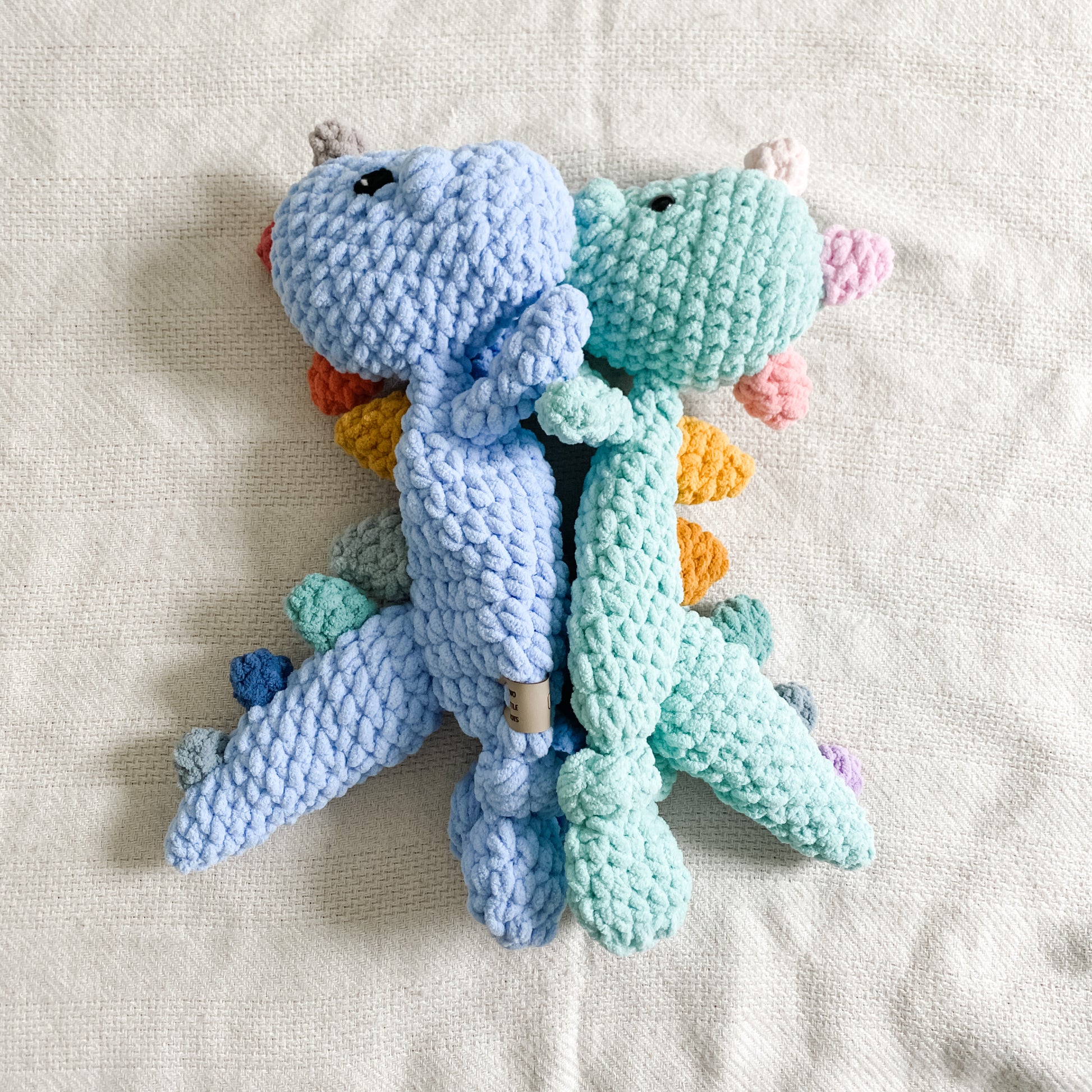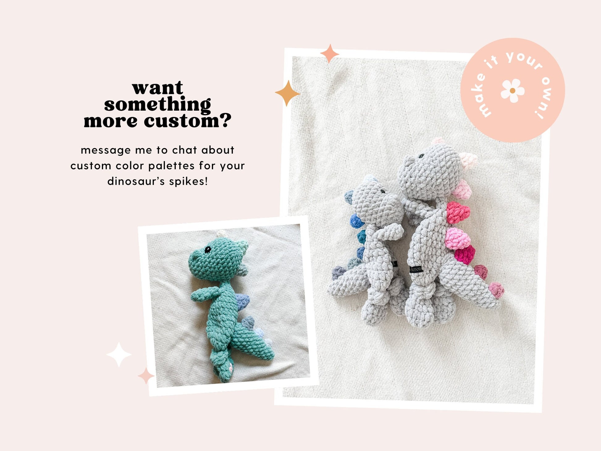 Get excited for your very own dinosaur snuggler! These dinosaurs are completely custom and made to order. They're perfect friend for toddlers and young kids! They make a great comfort toy or friend to snuggle up with for bed!