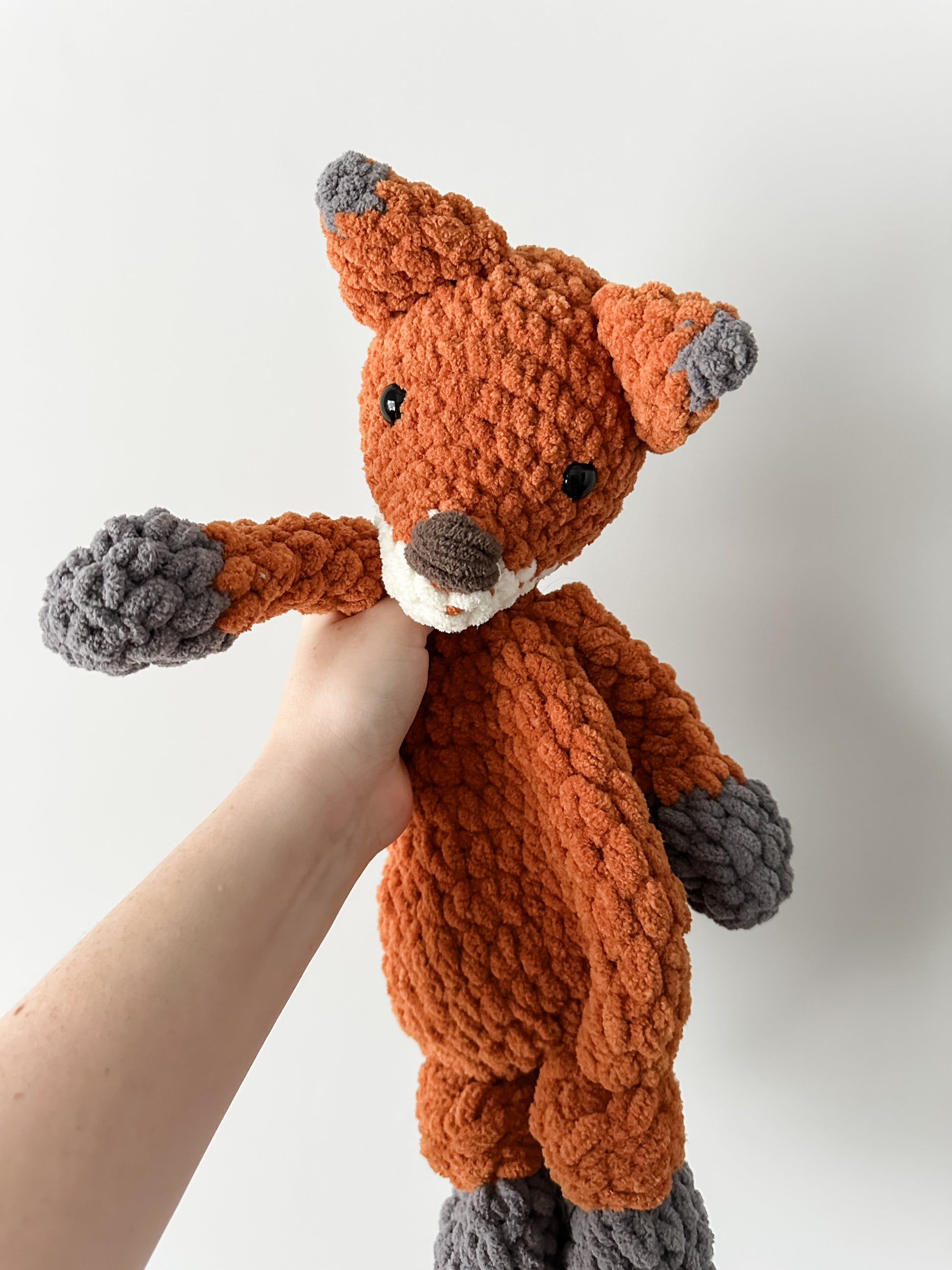 This fox is the perfect friend for toddlers and young kids! It makes a great comfort toy or friend to snuggle up with for bed!