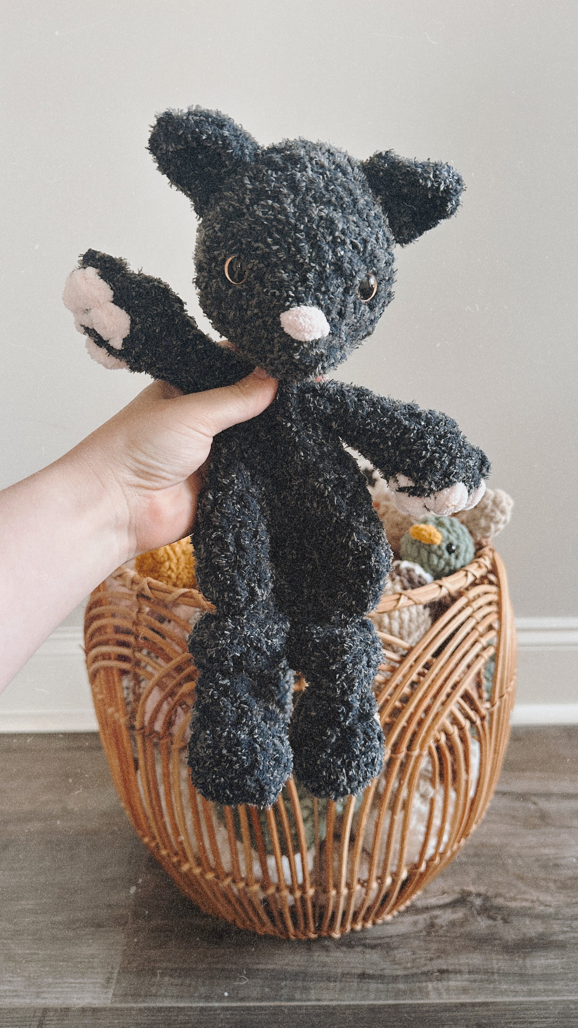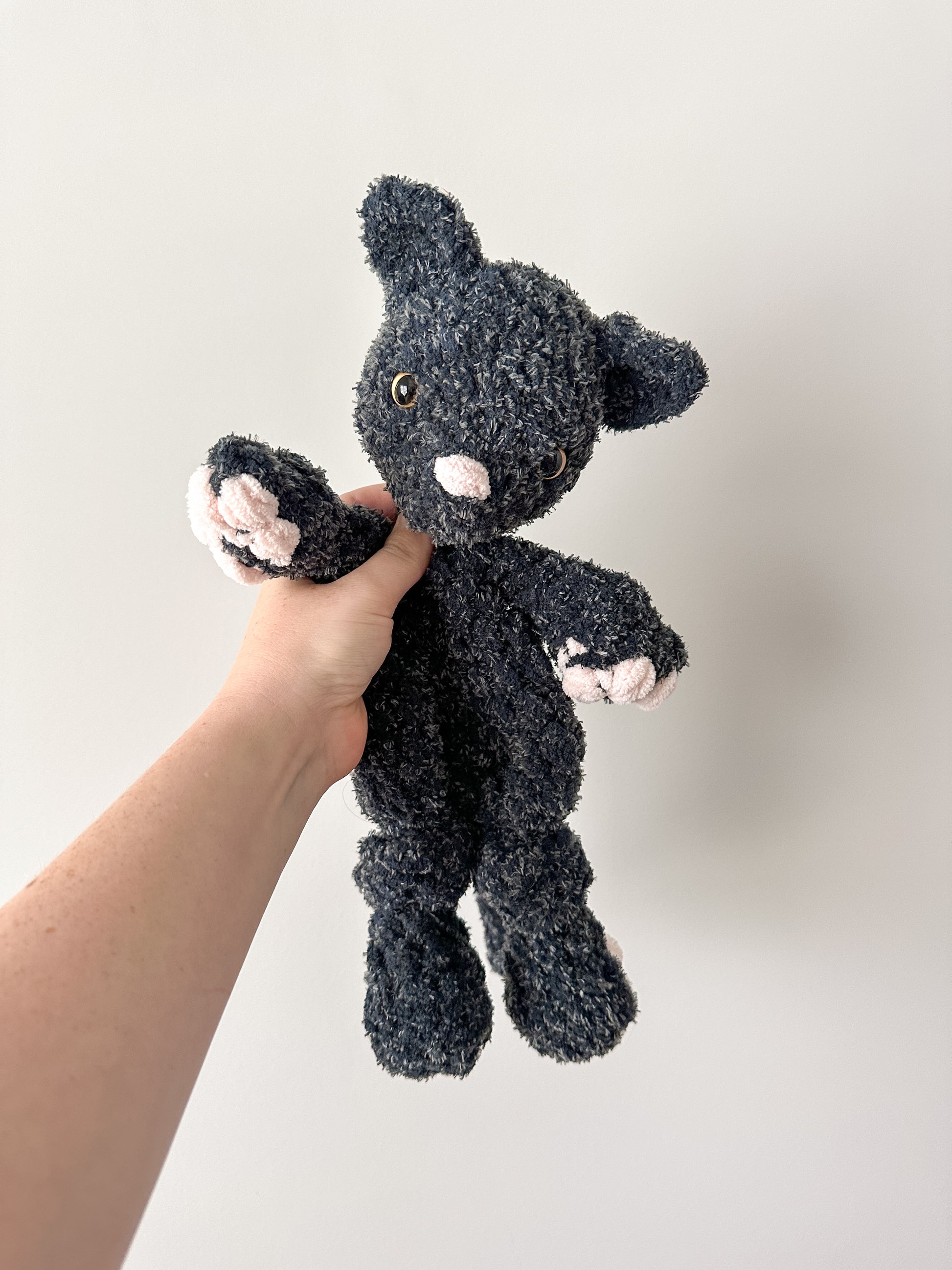 Meet Midnight, the mysterious and lovable black cat snuggler who’s always ready for cuddles, adventures, and a little bit of mischief! Standing at 12 inches tall, she’s the ideal companion for curious kiddos who love cozy moments and creative play.