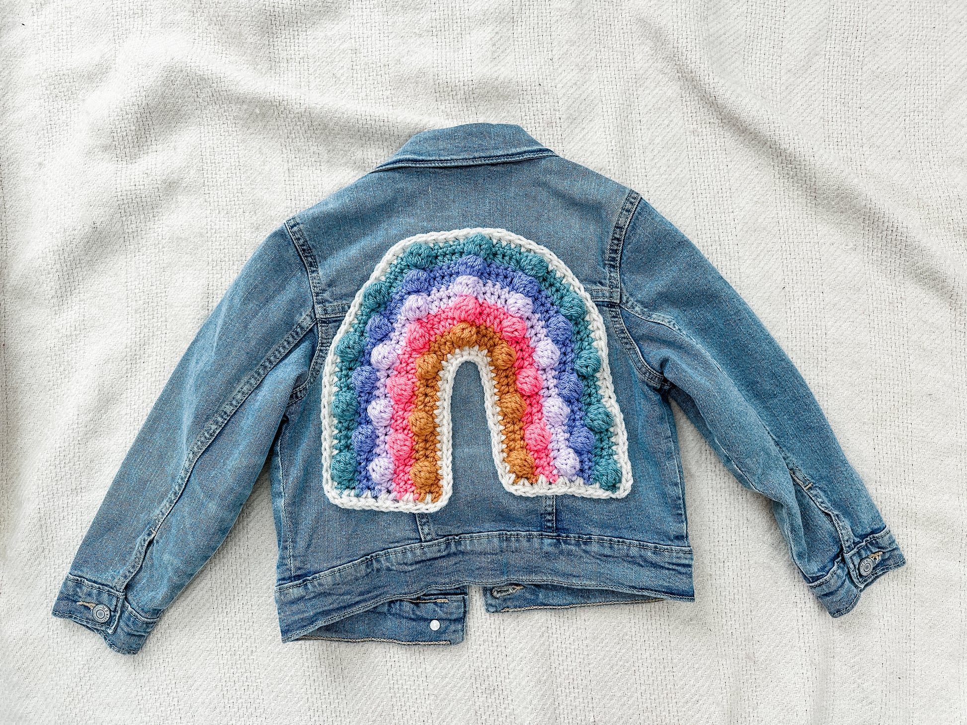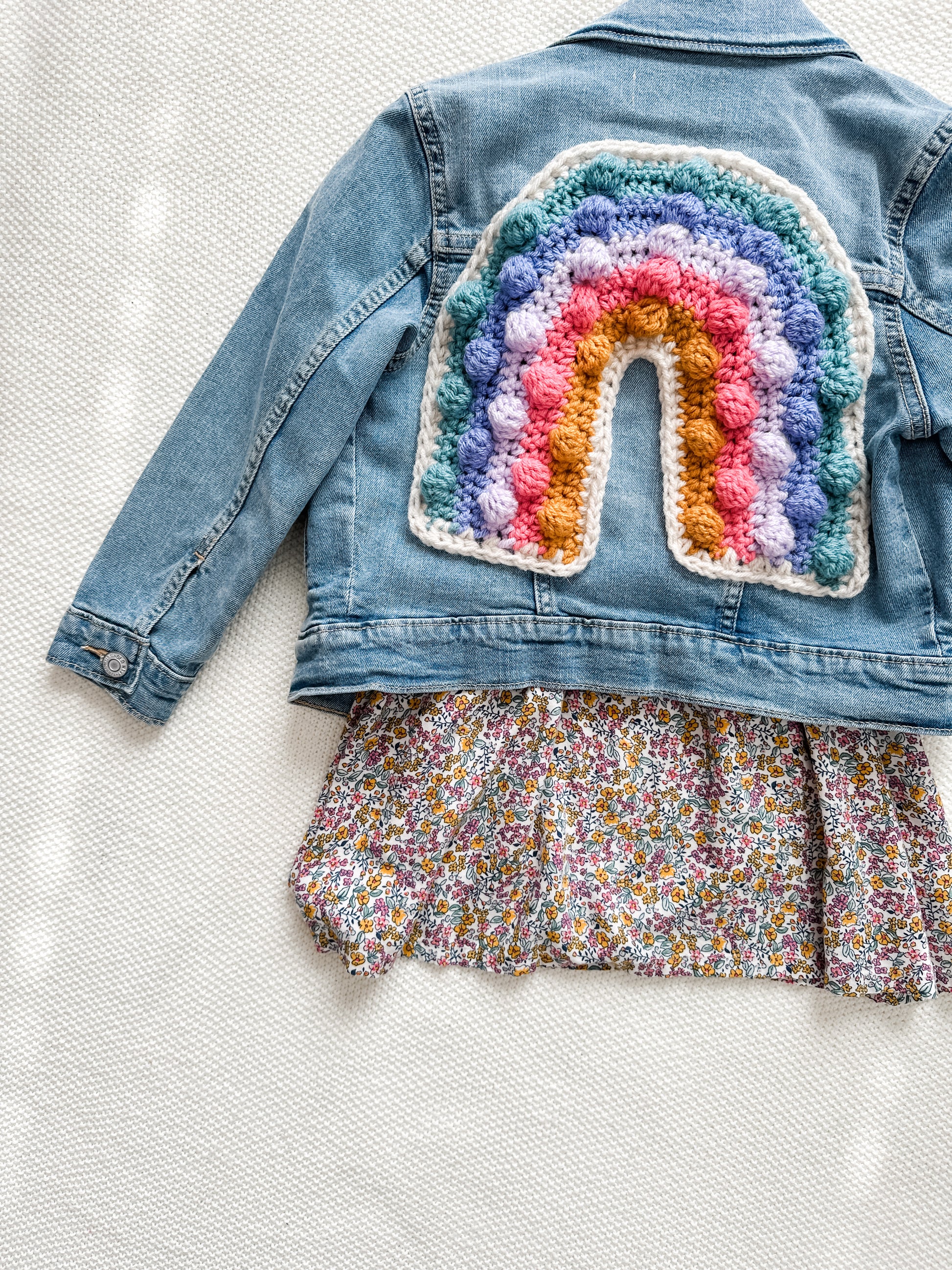These cute jean jackets are made unique with a crochet rainbow on the back. Each jacket is one-of-a-kind, combining eco-friendly fashion with playful design that’s perfect for springtime adventures, birthday parties, or simply brightening up the day.